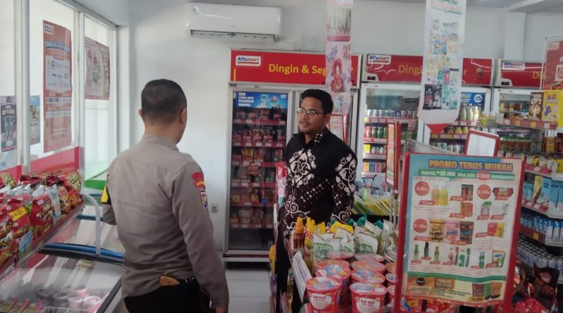 Serta mengecek situasi kamera cctv di waralaba alfamart di desa teluk terate serta memberikan arahan kepada pegawai alfamart agar waspada dan berhati hati ketika ada orang yang mencurigakan masuk ke waralaba untuk antisipasi pencurian.