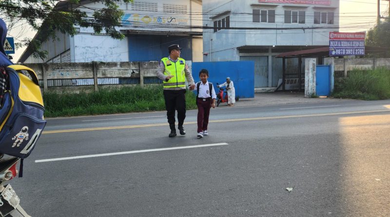 Seperti halnya anggota lalu lintas Polsek Kramatwatu Polresta Serkot Polda Banten melaksanakan pengaturan di depan SDN 2 pejaten Desa pejaten Kec.Kramatwatu,Rabu (22/4/2026).