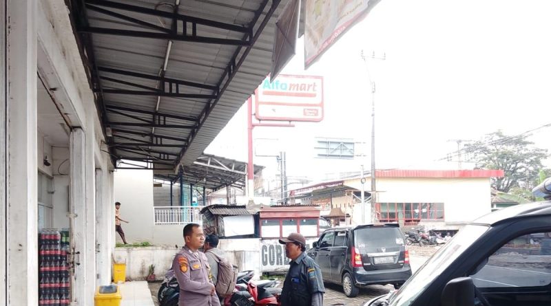 Bripka Usep patroli salah satu tukang parkir di salah satu minimarket di wilayah binaan kemudian sampaikan pesan kamtibmas.
