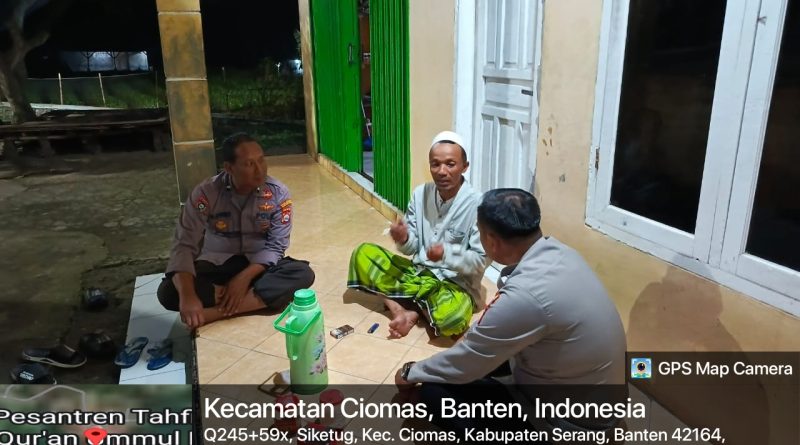 Kapolresta Serkot Kombes Pol.Yudha Satria,S.H.,S.I.K.,M.H., melalui Kapolsek Ciomas Polresta Serkot Iptu Ridwan Junaedi menyampaikan Polsek Ciomas Polresta Serkot melalui Bhabinkamtibmas nya patroli dialogis cegah gangguan kamtibmas.